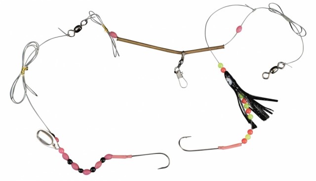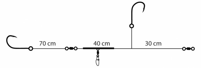 Takkel med singelslep, glidebom og en opphenger. Krokstørrelse 2/O. Takkel for litt større flyndrer, hyse, hvitting mm. Egnes med fiskestrimler, reker, blåskjell eller fjære-/børstemark, og fiskes fra drivende båt.