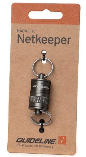 This has 4 kg tensile strength and holds the net well. Fastens with the spring ring in the D-ring at the back of the jacket or waders. It is easiest if you let the net handle hang down to access the net without hassle. It will hold your net secure when you are stumbling around the river or lake.