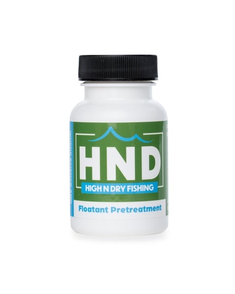 Floatant Pretreatment was designed to be as effective as other HND floatant products, but with special and unique materials to allow it to dry on the surface of the fly as well as soak into the fly fibers. The large opening in the bottle allows the fly fisher to soak their fly and allows the fly to be completely covered with waterproof and buoyant barrier. It works well on flies tied with all types of materials (including CDC). It contains no organic solvents, is odorless, and is environmentally friendly.