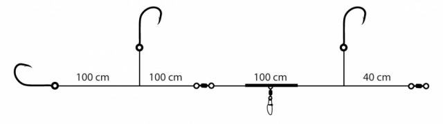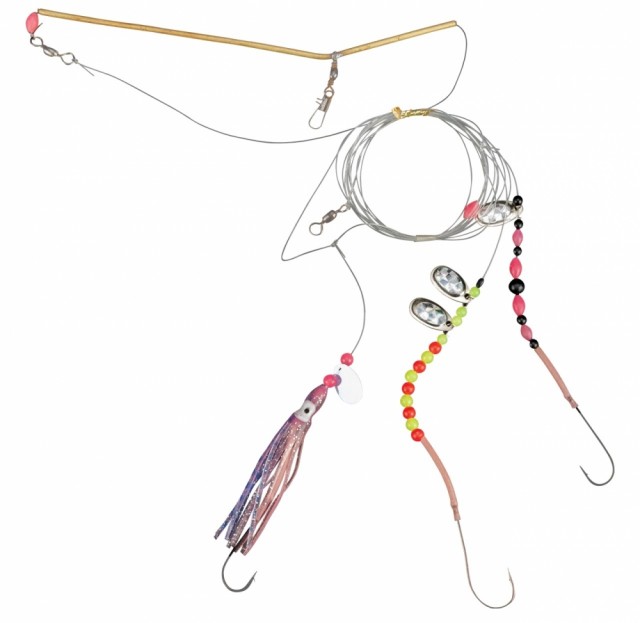 Glidende takkel med langt tokroksslep og en opphenger, rigget med 4/O-kroker. Fortommer utstyrt med fargerike perler, blekksprut og spinnerblader. Et godt allroundtakkel til litt større fisk på grunnere vann.