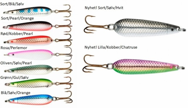 Den spennende slukoverflaten gjorde utslaget, og etter at noen eksemplarer ble re-produsert og testet, var det ingen tvil om at dette var riktig valg. Sluken kan fiskes både hurtig og sakte, og selv når det så vidt er fart på den, beveger Søvik Auren seg veldig fint og forlokkende i vannet. Under lengre spinnstopp på flere sekunder, roterer sluken mens den synker, og skifter synkeretning underveis. Mer kan du ikke be om, spesielt ikke når det er kaldt i vannet og fisken er treg. Søvik Auren leveres i en lang rekke forskjellige, spennende fargekombinasjoner og to vekter, 14g/6cm og 18g/8cm. Slukene er laget med tanke på sjøørret, men fungerer vel så bra til innlandsørret og andre fiskespisere i både ferskvann og saltvann.